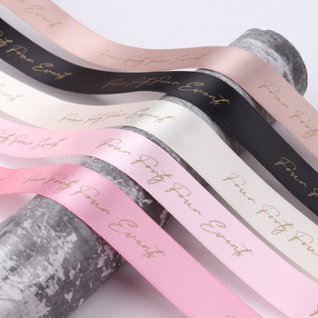 Cintas de satén personalizadas de 100 yardas, diseños florales estampados en caliente de oro/oro rosa/plata, regalo de boda de poliéster de una sola cara
